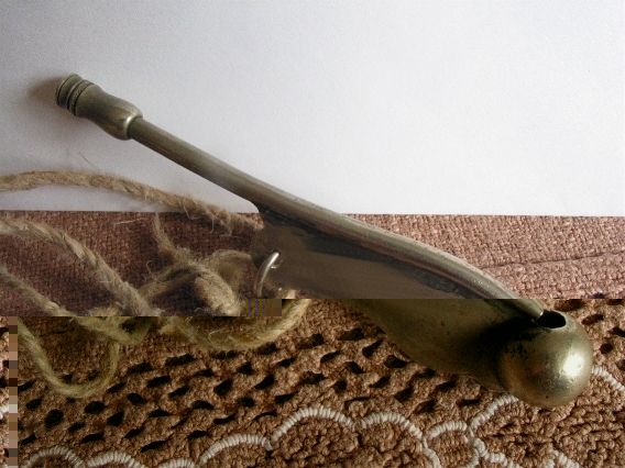 hier kommt die Auflösung der Rätselfrage: Mixery hat schon ganz gut gelegen mit seiner Vermutung. Es handelt sich tatsächlich um eine Pfeife. Allerdings ist eine Hundepfeife viel leiser als dieses "Ding". Es ist eine Bootsmannspfeife, die aus den Beständen der deutschen Kaiserlichen Marine stammt und meinem Urgroßvater als Arbeitsgerät gedient hat, als er als Bootsmann auf dem Segelschulschiff "SMS Gneisenau" unterwegs war. Entsprechend laut ist diese Pfeife. Sie ist rund 130 Jahre als, aber immer noch laut genug, um mir als "Disziplinator" zu dienen.